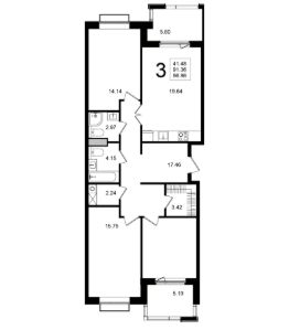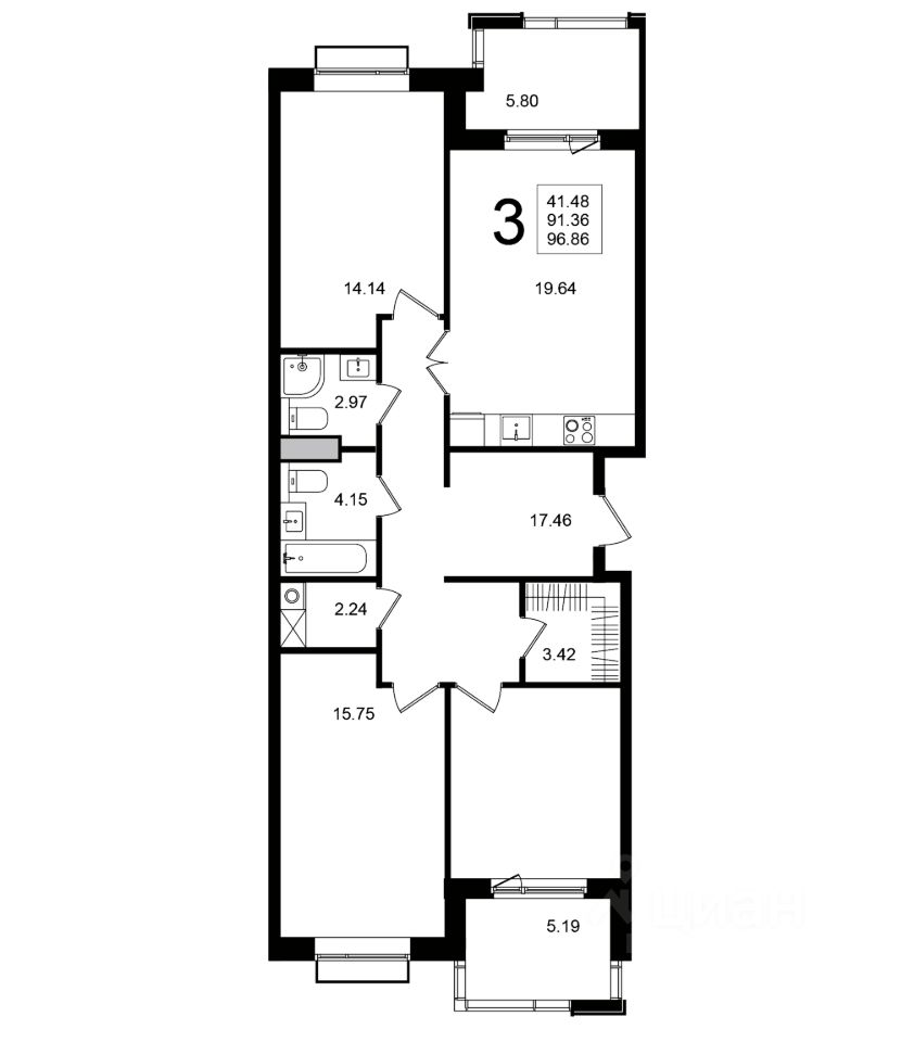 Продаётся 3-комнатная квартира в строящемся доме (Корпус 8), срок сдачи: 2-кв. 2026, общей площадью 96.86 кв.м., на 5 этаже.