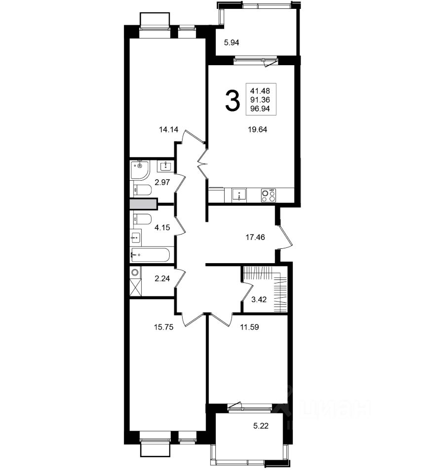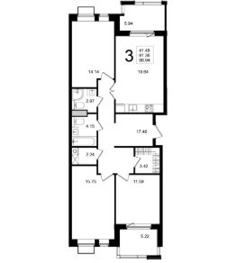 Продаётся 3-комнатная квартира в строящемся доме (Корпус 7), срок сдачи: 2-кв. 2026, общей площадью 96.94 кв.м., на 2 этаже.