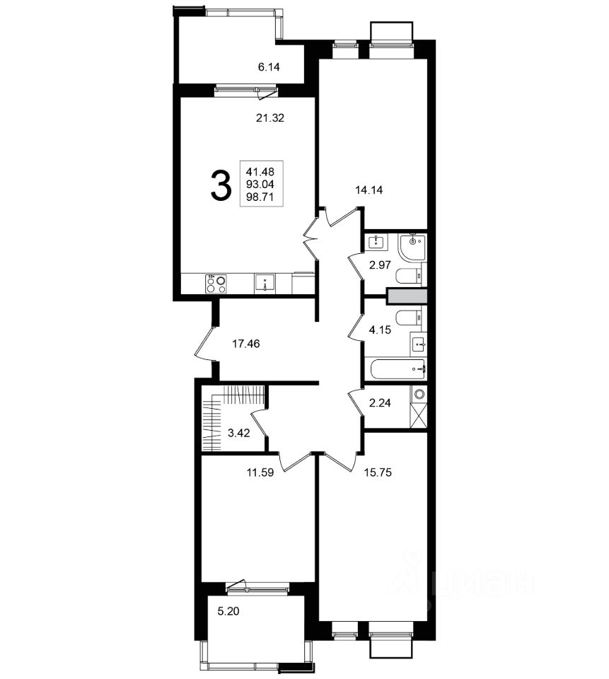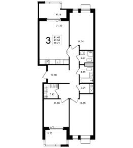 Продаётся 3-комнатная квартира в строящемся доме (Корпус 7), срок сдачи: 2-кв. 2026, общей площадью 98.71 кв.м., на 3 этаже.