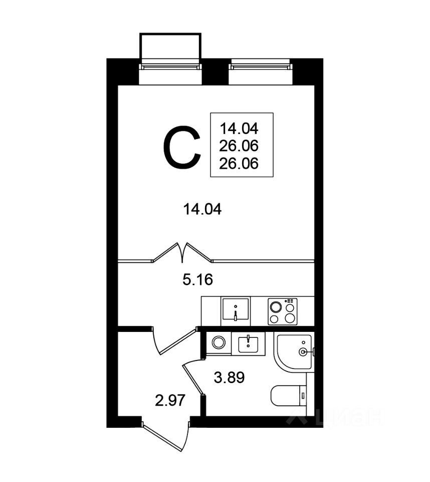 Продаётся студия в строящемся доме (Корпус 6), срок сдачи: 2-кв. 2026, общей площадью 26.06 кв.м., на 4 этаже.