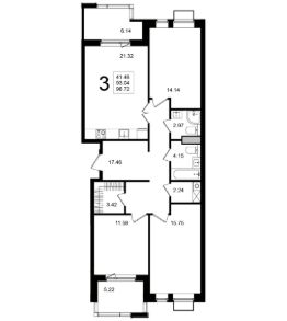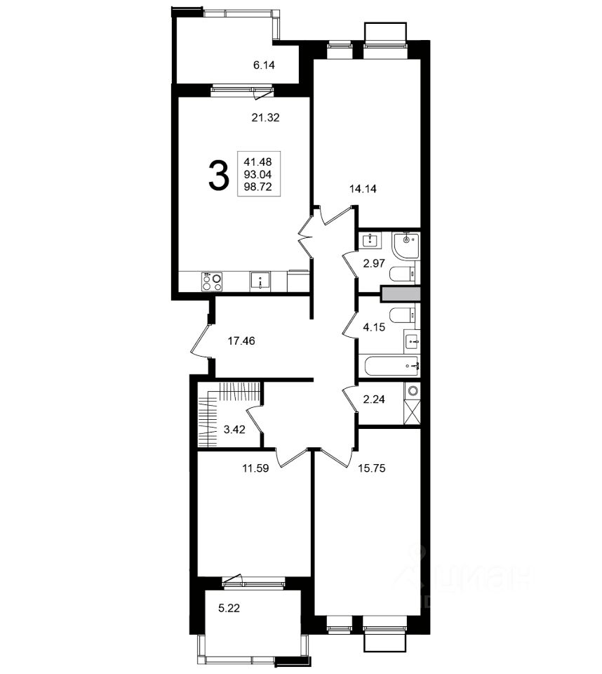 Продаётся 3-комнатная квартира в строящемся доме (Корпус 6), срок сдачи: 2-кв. 2026, общей площадью 98.72 кв.м., на 2 этаже.