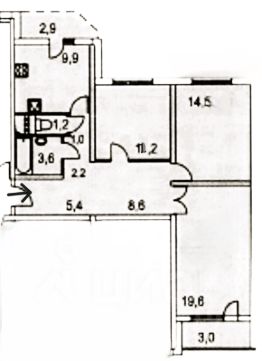 - жилая площадь: 44,5 кв.м., все комнаты изолированные: 19,8/14,5/10,2