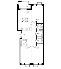 Продаётся 3-комнатная квартира в строящемся доме (Корпус 6), срок сдачи: 2-кв. 2026, общей площадью 99.52 кв.м., на 4 этаже.