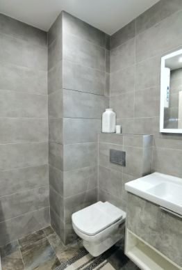 Просторная ванная комната с сан узлом, бойлер на 100л., стиральная машина Weissgauff с сушкой.