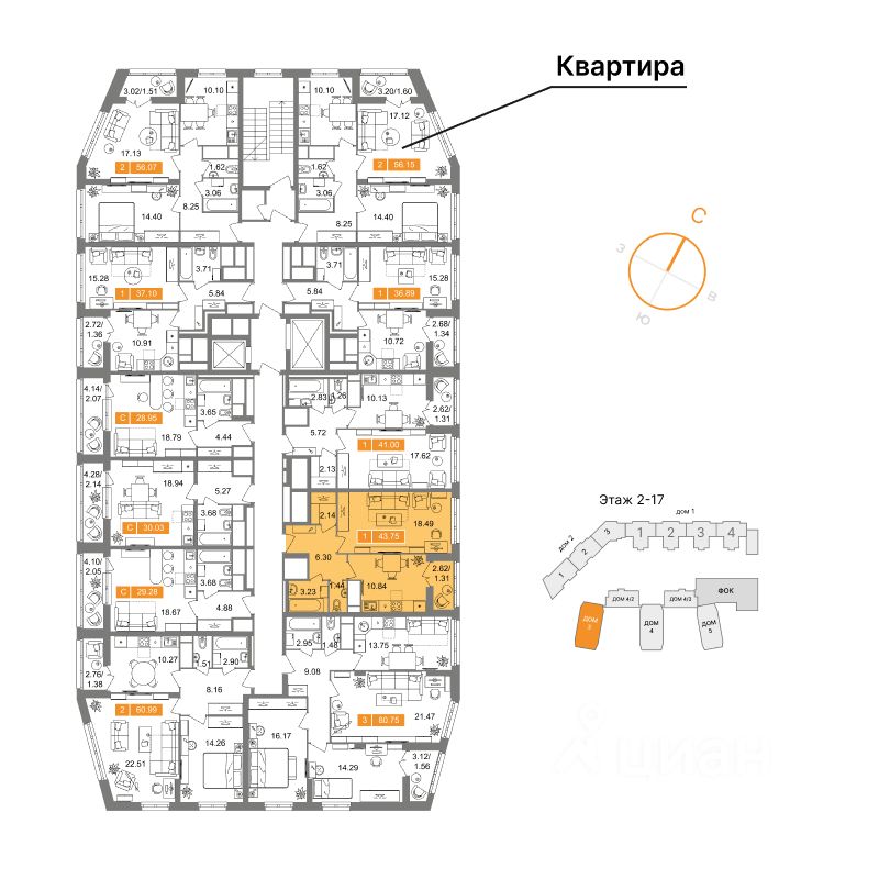 Продается 1 комн. квартира на 13 этаже из 17, секция 8, в Планерный Квартал площадью 43.75 кв.м. ЖК Планерный Квартал - это сочетание развитой инфраструктуры, современных технологий, отличной экологии и транспортной доступности. Комплекс расположен в 700м от МКАД на границе с Алёшкинским лесопарком в районе Новые Химки. Прямой выезд на МКАД и стремительное Ленинградское шоссе за 20 минут примчат вас к центру Москвы. Детские сады, школы и медицинские учреждения находится в шаговой доступности. Закрытая территория, двор без машин, круглосуточная охрана и видеонаблюдением обеспечат безопасность для жителей, а бесключевой доступ, высокоскоростной wi-fi и консьерж-служба удобство и комфорт. Двухэтажный подземный паркинг с возможностью зарядки электромобилей позволит забыть о проблеме парковок во дворе, а наличие кладовых помещений избавит от проблем с хранением габаритных и сезонных вещей. На территории расположен собственный спорткомплекс с детским и спортивным бассейном, детские и спортивные площадки с зонами для разных возрастов, а также общественное пространство для проведения праздников и массовых мероприятий. Подъезды спроектированы известным архбюро в современном стиле, оборудованы современным инженерным оборудованием, колясочными, местами для зарядки электросамокатов и высокоскоростными лифтами. Большое разнообразие планировок от 26 до 88м2 и корпуса разной этажности, от 6 до 17 позволит выбрать именно свою квартиру!