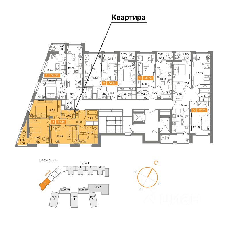 Продается 3 комн. квартира на 17 этаже из 17, секция 5, в Планерный Квартал площадью 70.66 кв.м. ЖК Планерный Квартал - это сочетание развитой инфраструктуры, современных технологий, отличной экологии и транспортной доступности. Комплекс расположен в 700м от МКАД на границе с Алёшкинским лесопарком в районе Новые Химки. Прямой выезд на МКАД и стремительное Ленинградское шоссе за 20 минут примчат вас к центру Москвы. Детские сады, школы и медицинские учреждения находится в шаговой доступности. Закрытая территория, двор без машин, круглосуточная охрана и видеонаблюдением обеспечат безопасность для жителей, а бесключевой доступ, высокоскоростной wi-fi и консьерж-служба удобство и комфорт. Двухэтажный подземный паркинг с возможностью зарядки электромобилей позволит забыть о проблеме парковок во дворе, а наличие кладовых помещений избавит от проблем с хранением габаритных и сезонных вещей. На территории расположен собственный спорткомплекс с детским и спортивным бассейном, детские и спортивные площадки с зонами для разных возрастов, а также общественное пространство для проведения праздников и массовых мероприятий. Подъезды спроектированы известным архбюро в современном стиле, оборудованы современным инженерным оборудованием, колясочными, местами для зарядки электросамокатов и высокоскоростными лифтами. Большое разнообразие планировок от 26 до 88м2 и корпуса разной этажности, от 6 до 17 позволит выбрать именно свою квартиру!