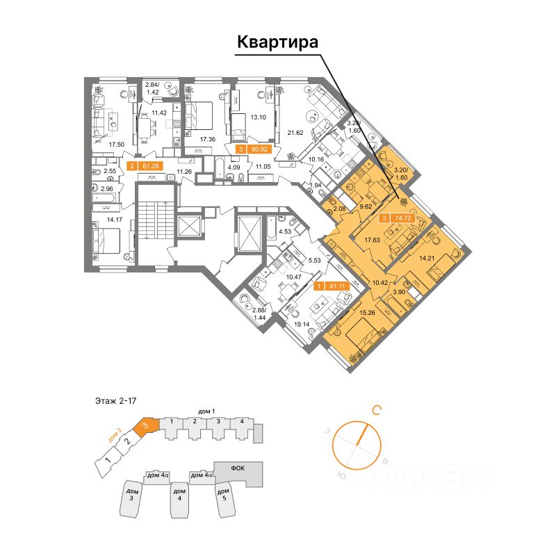 Продается 3 комн. квартира на 17 этаже из 17, секция 7, в Планерный Квартал площадью 74.72 кв.м. ЖК Планерный Квартал - это сочетание развитой инфраструктуры, современных технологий, отличной экологии и транспортной доступности. Комплекс расположен в 700м от МКАД на границе с Алёшкинским лесопарком в районе Новые Химки. Прямой выезд на МКАД и стремительное Ленинградское шоссе за 20 минут примчат вас к центру Москвы. Детские сады, школы и медицинские учреждения находится в шаговой доступности. Закрытая территория, двор без машин, круглосуточная охрана и видеонаблюдением обеспечат безопасность для жителей, а бесключевой доступ, высокоскоростной wi-fi и консьерж-служба удобство и комфорт. Двухэтажный подземный паркинг с возможностью зарядки электромобилей позволит забыть о проблеме парковок во дворе, а наличие кладовых помещений избавит от проблем с хранением габаритных и сезонных вещей. На территории расположен собственный спорткомплекс с детским и спортивным бассейном, детские и спортивные площадки с зонами для разных возрастов, а также общественное пространство для проведения праздников и массовых мероприятий. Подъезды спроектированы известным архбюро в современном стиле, оборудованы современным инженерным оборудованием, колясочными, местами для зарядки электросамокатов и высокоскоростными лифтами. Большое разнообразие планировок от 26 до 88м2 и корпуса разной этажности, от 6 до 17 позволит выбрать именно свою квартиру!