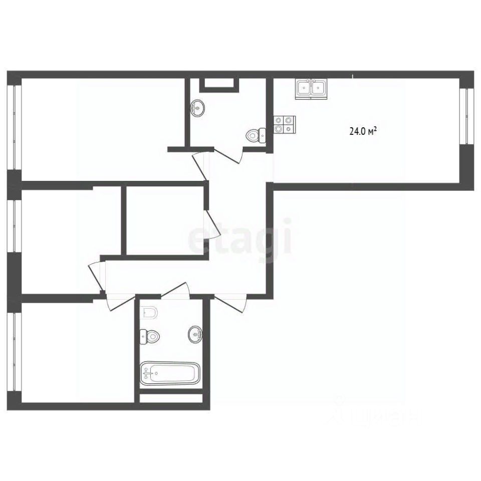 - Общая площадь квартиры составляет 110,7 кв. м, с просторной кухней в 24 кв. м.
