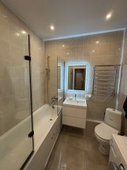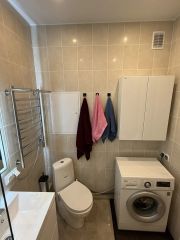 - ванная комната с качественной сантехникой, стиральной машиной LG и удобными стеклянными шторками на ванной;