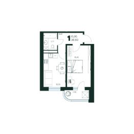 Продаётся 1-комнатная квартира в строящемся доме (Корпус 2), срок сдачи: III-кв. 2027, общей площадью 38.8 кв.м., на 8 этаже. Новый жилой комплекс "по ул. Первомайская"