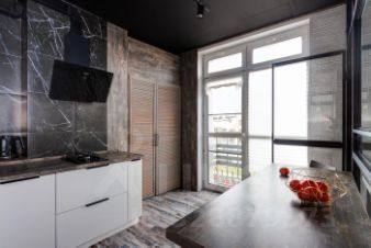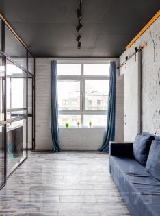 Квартира очень светлая за счёт больших панорамных окон. В кухне - французский балкон. Окна выходят во двор.