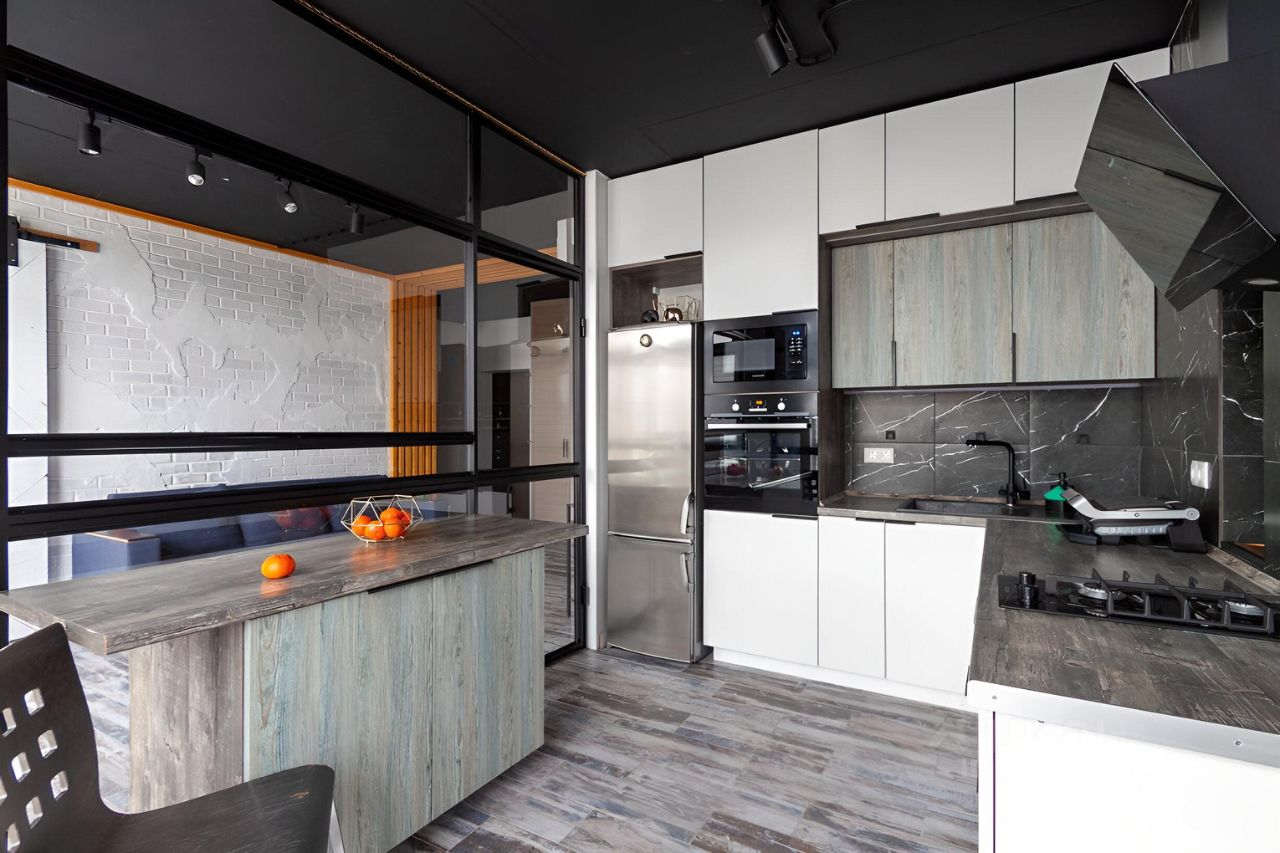 На кухне установлен кухонный гарнитур со всей необходимой техникой от передовых производителей.