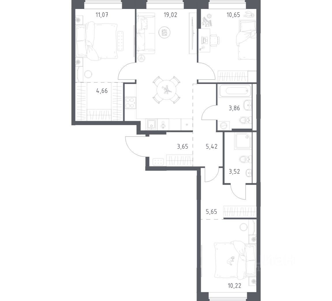 Строим кварталы для жизни с заботой о будущем. Предлагается 3-комнатная квартира комфорт-класса площадью 77,72 кв.м в корпусе 5 на 8-м этаже, в жилом комплексе "Большое Юрлово".