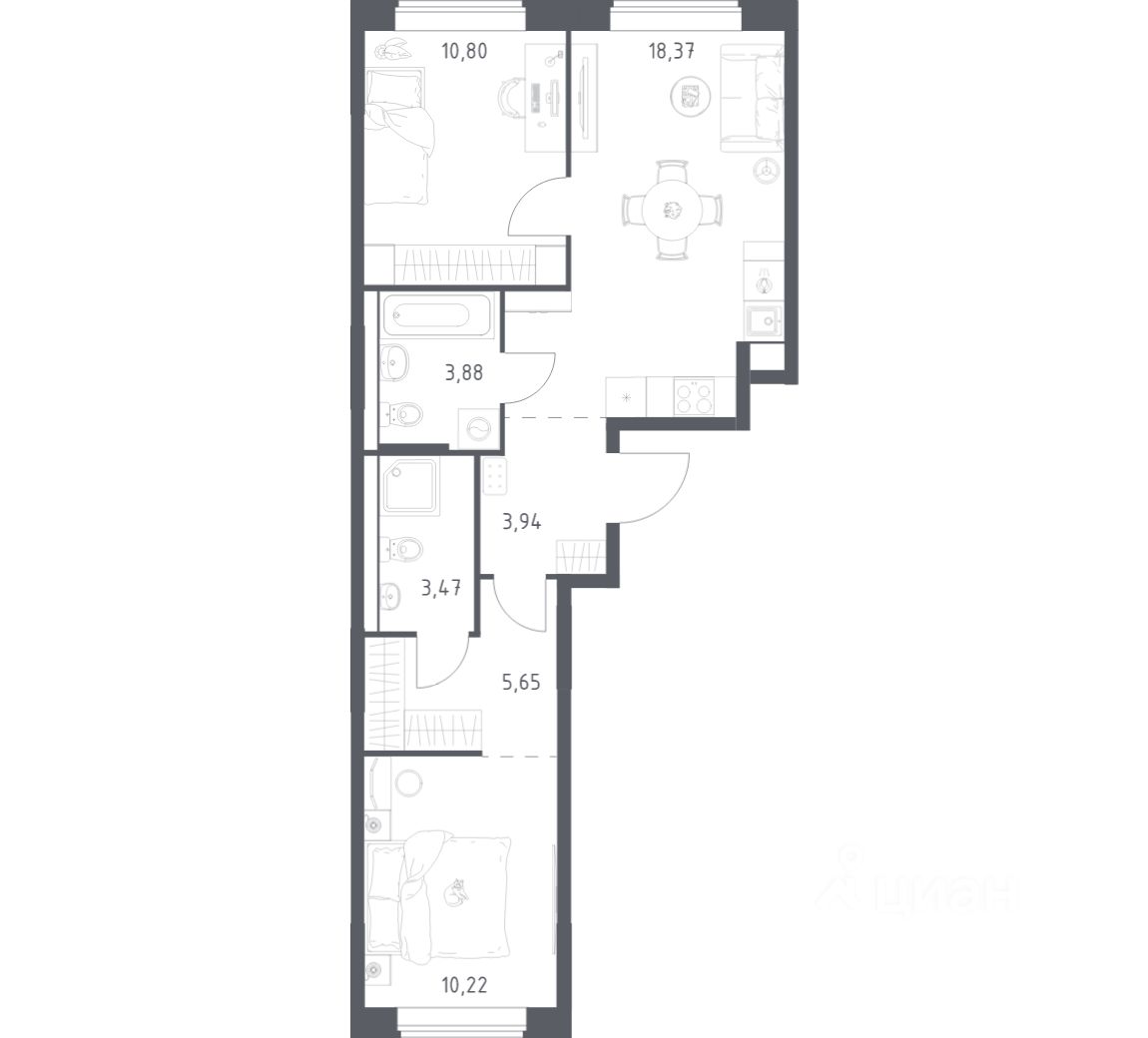 Строим кварталы для жизни с заботой о будущем. Предлагается 2-комнатная квартира комфорт-класса площадью 56,33 кв.м в корпусе 5 на 6-м этаже, в жилом комплексе "Большое Юрлово".