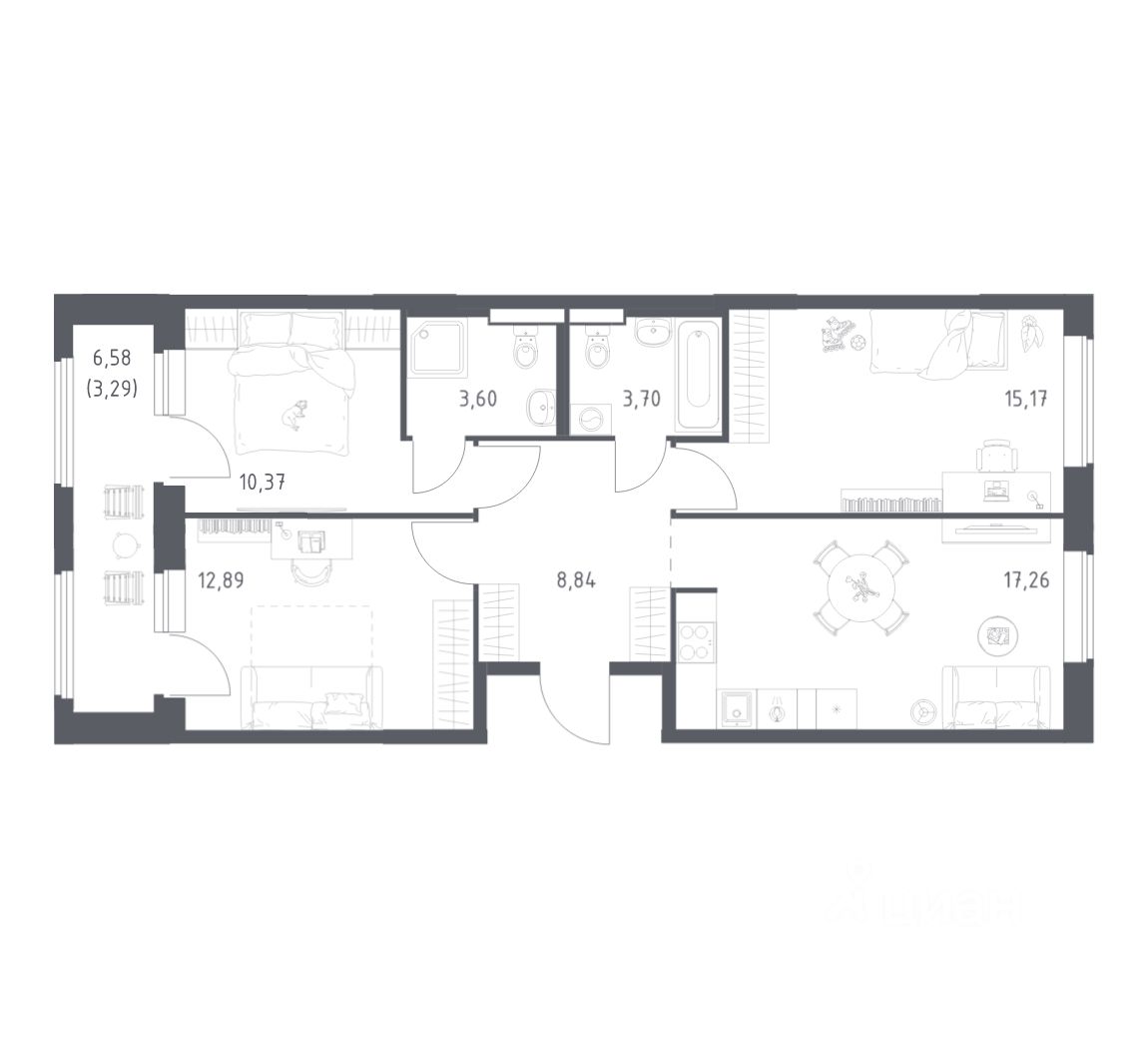 Строим кварталы для жизни с заботой о будущем. Предлагается 3-комнатная квартира комфорт-класса площадью 75,12 кв.м в корпусе 5 на 11-м этаже, в жилом комплексе "Большое Юрлово".