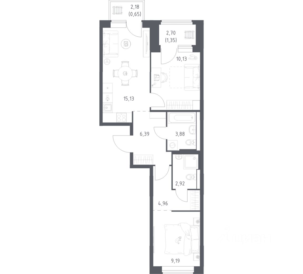 Строим кварталы для жизни с заботой о будущем. Предлагается 2-комнатная квартира комфорт-класса площадью 54,6 кв.м в корпусе 5 на 9-м этаже, в жилом комплексе "Большое Юрлово".
