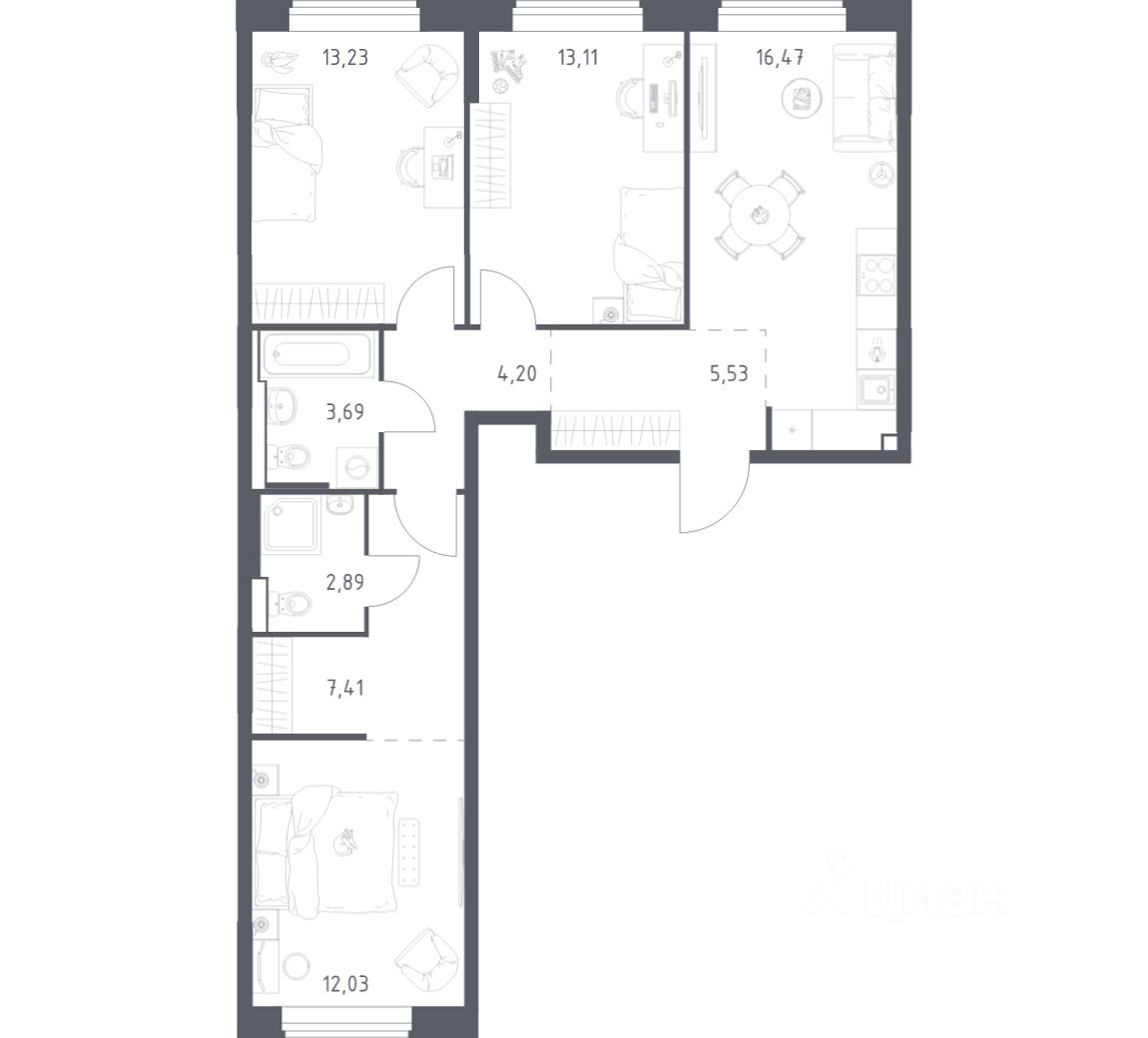 Строим кварталы для жизни с заботой о будущем. Предлагается 3-комнатная квартира комфорт-класса площадью 78,56 кв.м в корпусе 5 на 4-м этаже, в жилом комплексе "Большое Юрлово".
