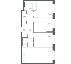 Строим кварталы для жизни с заботой о будущем. Предлагается 3-комнатная квартира комфорт-класса площадью 70,61 кв.м в корпусе 6 на 2-м этаже, в жилом комплексе "Большое Юрлово".