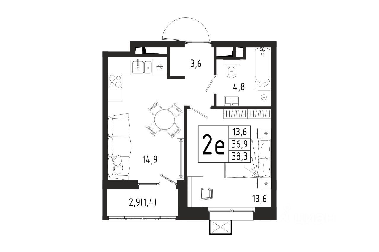 Продаётся 1-комнатная квартира в строящемся доме (Корпус 8 (2 очередь)), общей площадью 38.30 кв.м., на 8 этаже.