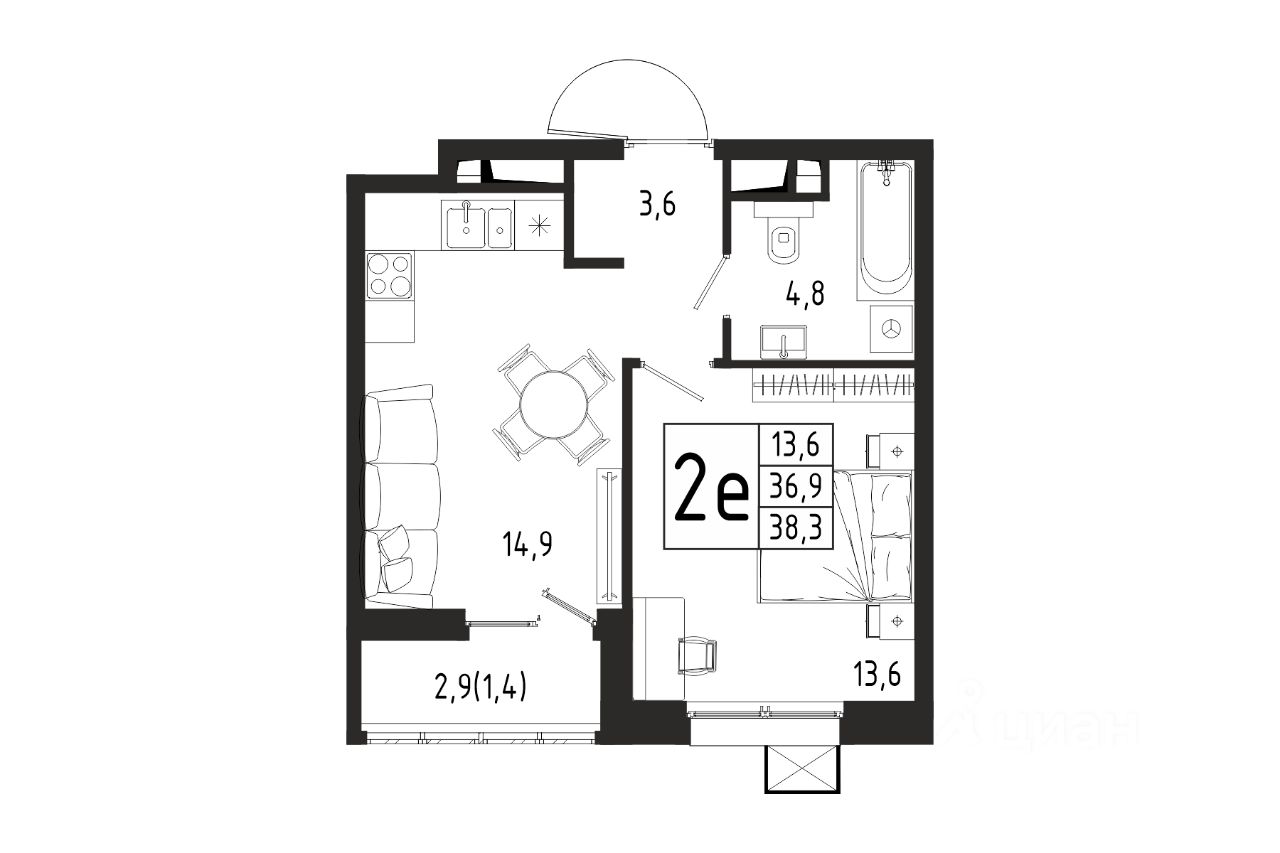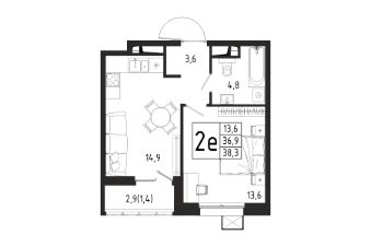 Продаётся 1-комнатная квартира в строящемся доме (Корпус 4 (2 очередь)), общей площадью 38.30 кв.м., на 8 этаже.