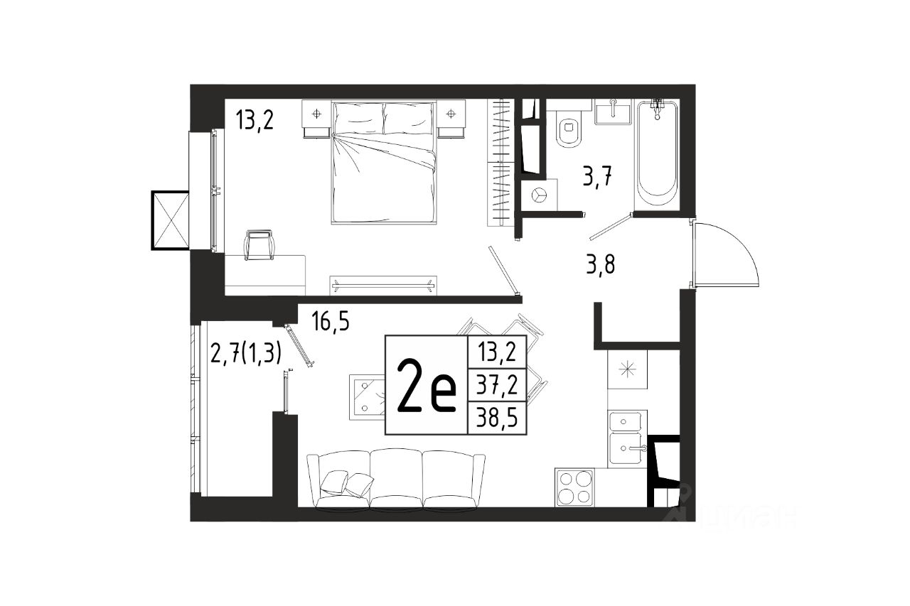 Продаётся 1-комнатная квартира в строящемся доме (Корпус 4 (2 очередь)), общей площадью 38.50 кв.м., на 8 этаже.