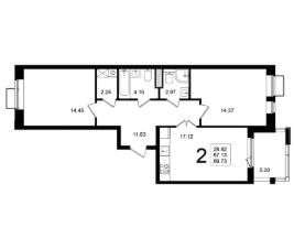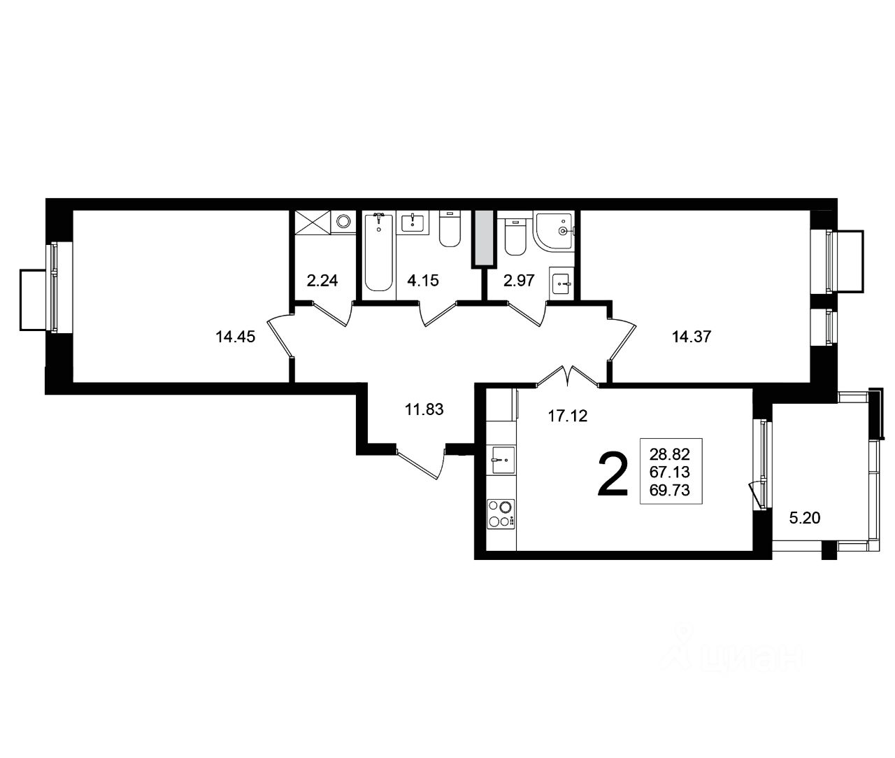 Продаётся 2-комнатная квартира в строящемся доме (Корпус 8), срок сдачи: 2-кв. 2026, общей площадью 69.73 кв.м., на 5 этаже.