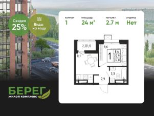 Продаётся 1-комнатная квартира в строящемся доме (Корпус 4 (2 очередь)), общей площадью 24.00 кв.м., на 5 этаже.