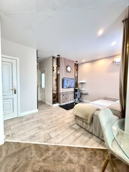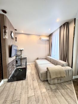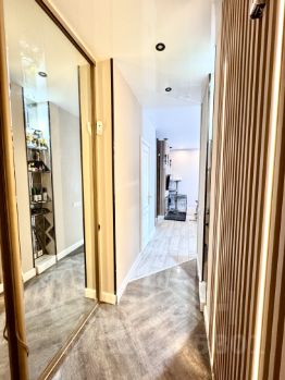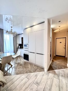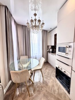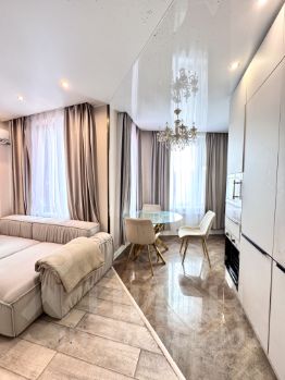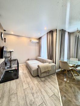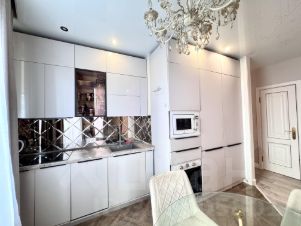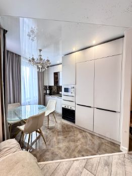 В квартире сделан качественный евроремонт. Просторная кухня оснащена необходимой бытовой техникой, а также местом для обеденной зоны. Санузел совмещенный, выполнен в современном стиле. Обстановка квартиры продумана до мелочей для максимального комфорта проживания.