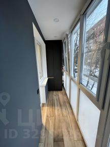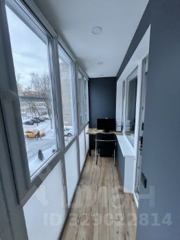 Заменены окна и сделано полное остекление лоджии, фирма Veka. Также установлен тёплый пол. Выход на лоджию для удобства сделан как из кухни, так и из комнаты. Предусмотрены система хранения и рабочее место.