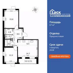 Продаётся 3-к квартира номер 53 общей площадью 67.7 кв.м. на 15-м этаже 15 этажного здания. Предчистовая отделка. Цена с учётом скидки.