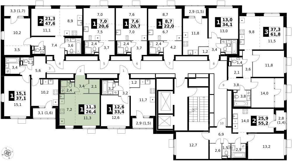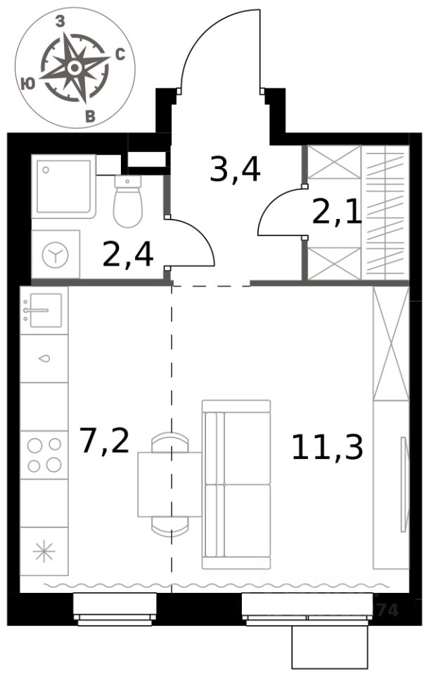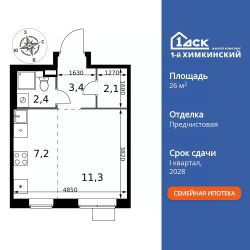Продаётся квартира-студия номер 98 общей площадью 26.4 кв.м. на 6-м этаже 17 этажного здания. Предчистовая отделка. Цена с учётом скидки.