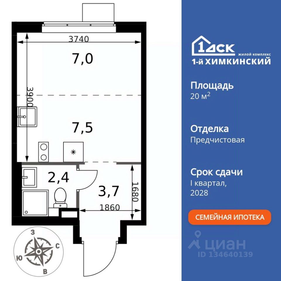 Продаётся квартира-студия номер 211 общей площадью 20.6 кв.м. на 17-м этаже 17 этажного здания. Предчистовая отделка. Цена с учётом скидки.