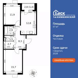 Продаётся 2-к квартира номер 260 общей площадью 57.2 кв.м. на 12-м этаже 17 этажного здания. Чистовая отделка. Цена с учётом скидки.