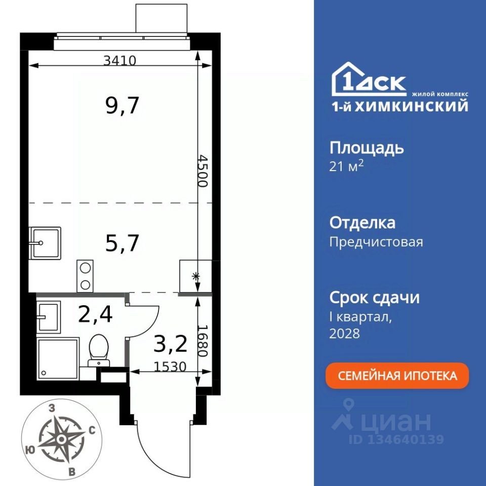 Продаётся квартира-студия номер 324 общей площадью 21 кв.м. на 6-м этаже 17 этажного здания. Предчистовая отделка. Цена с учётом скидки.