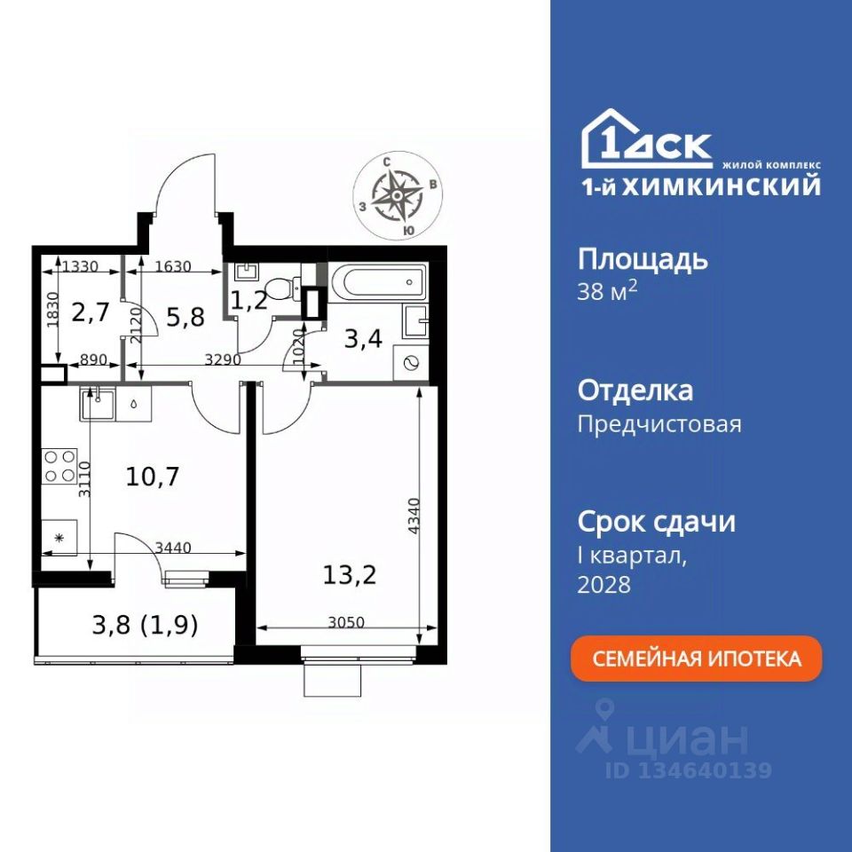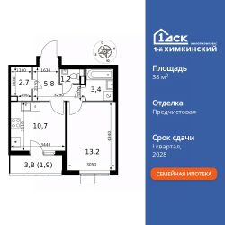 Продаётся 1-к квартира номер 458 общей площадью 38.9 кв.м. на 10-м этаже 10 этажного здания. Предчистовая отделка. Цена с учётом скидки.