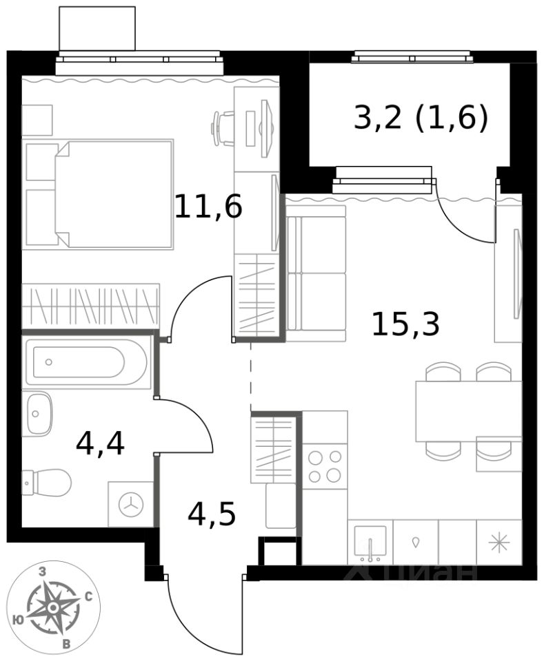 Квартира без отделки. Чистый холст для воплощения интерьера вашей мечты.
