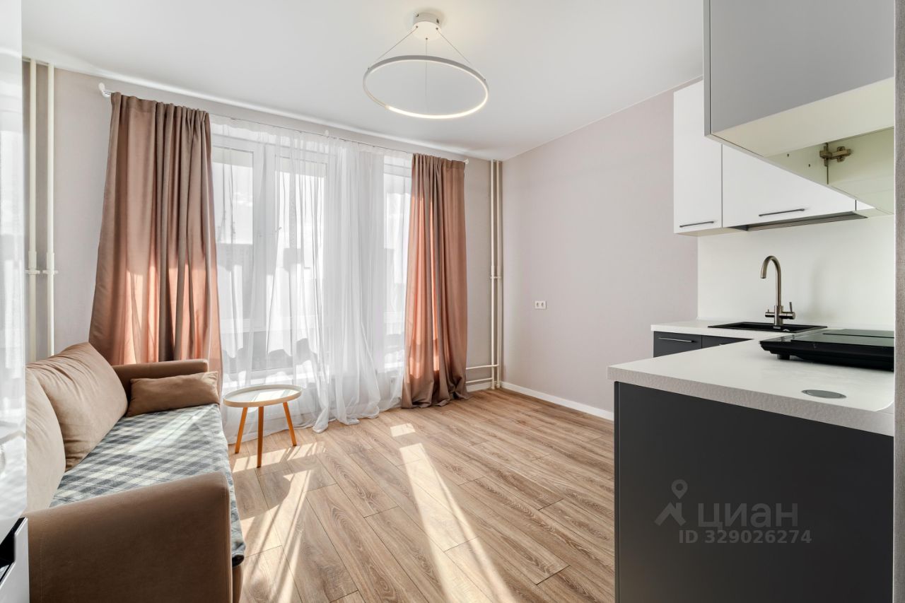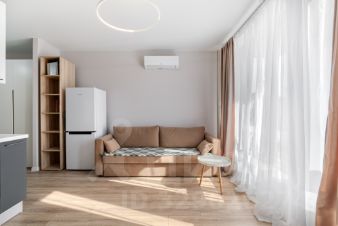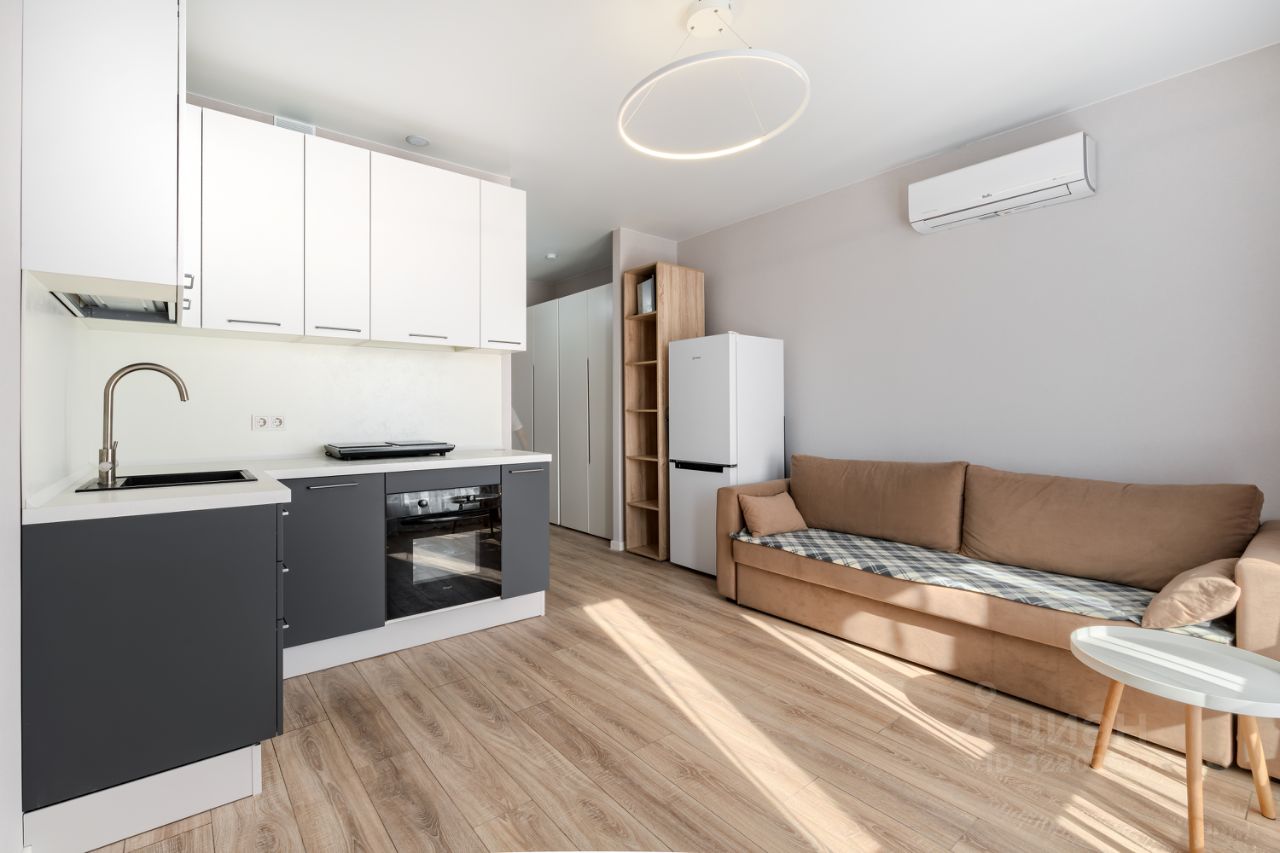 Функциональная студия с свежим ремонтом. Квартира полностью готова к жизни. Внутри есть всё: мебель, бытовая техника, шторы и даже посуда. В квартиру можно заехать и жить.