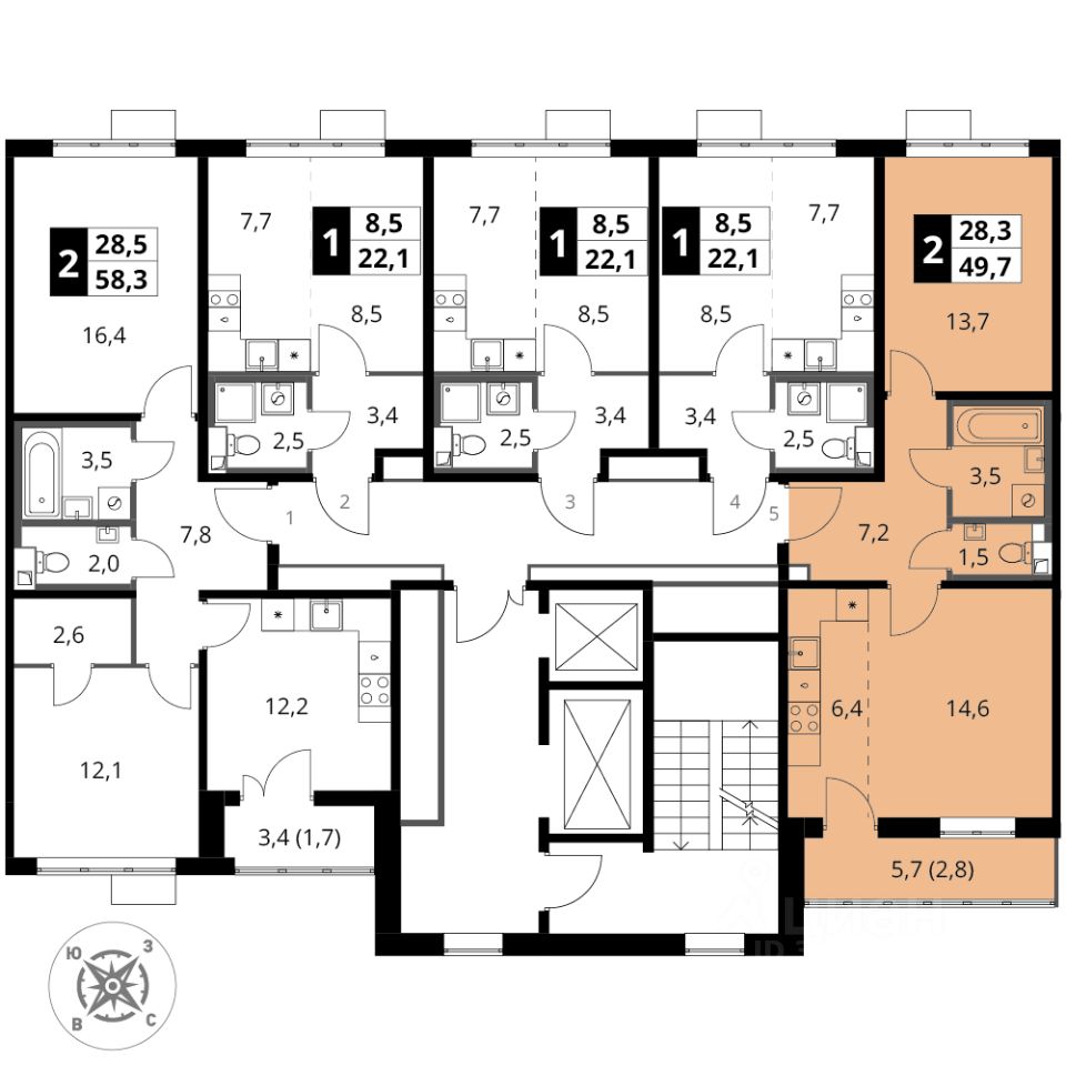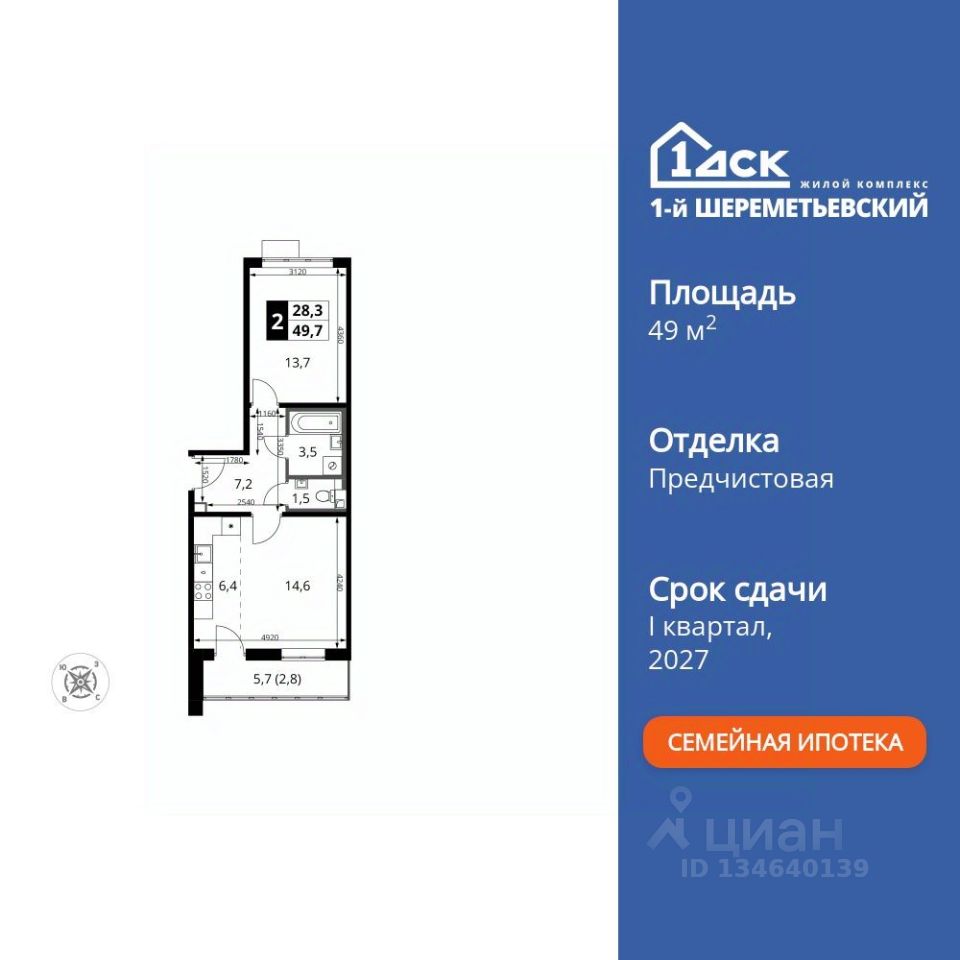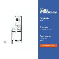 Продаётся 2-к квартира номер 835 общей площадью 49.7 кв.м. на 12-м этаже 16 этажного здания. Предчистовая отделка. Цена с учётом скидки.
