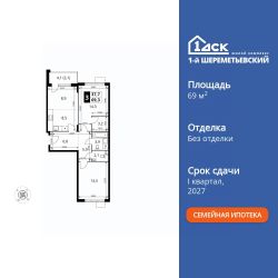 Продаётся 3-к квартира номер 1270 общей площадью 69.3 кв.м. на 10-м этаже 17 этажного здания. Без отделки.
