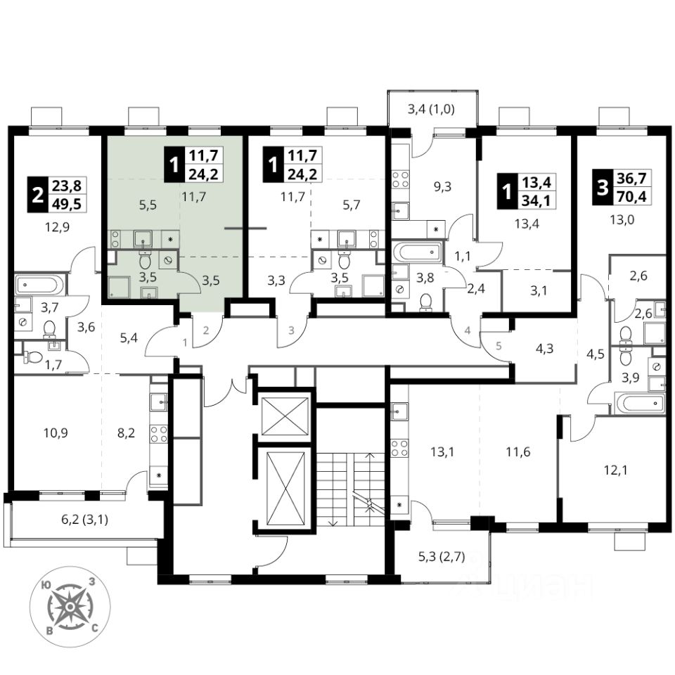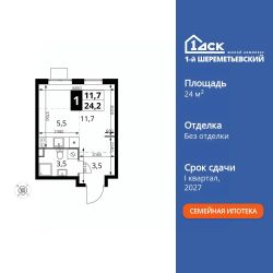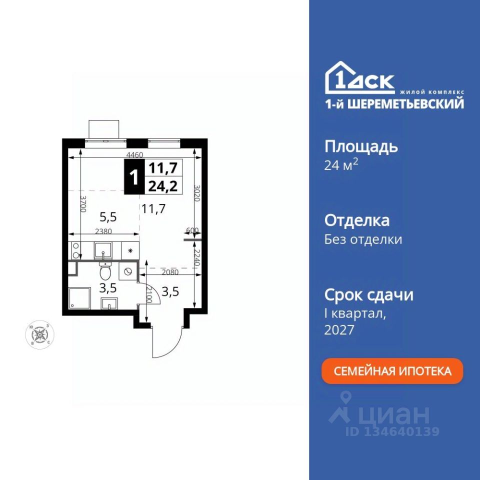 Продаётся квартира-студия номер 710 общей площадью 24.2 кв.м. на 6-м этаже 17 этажного здания. Без отделки.