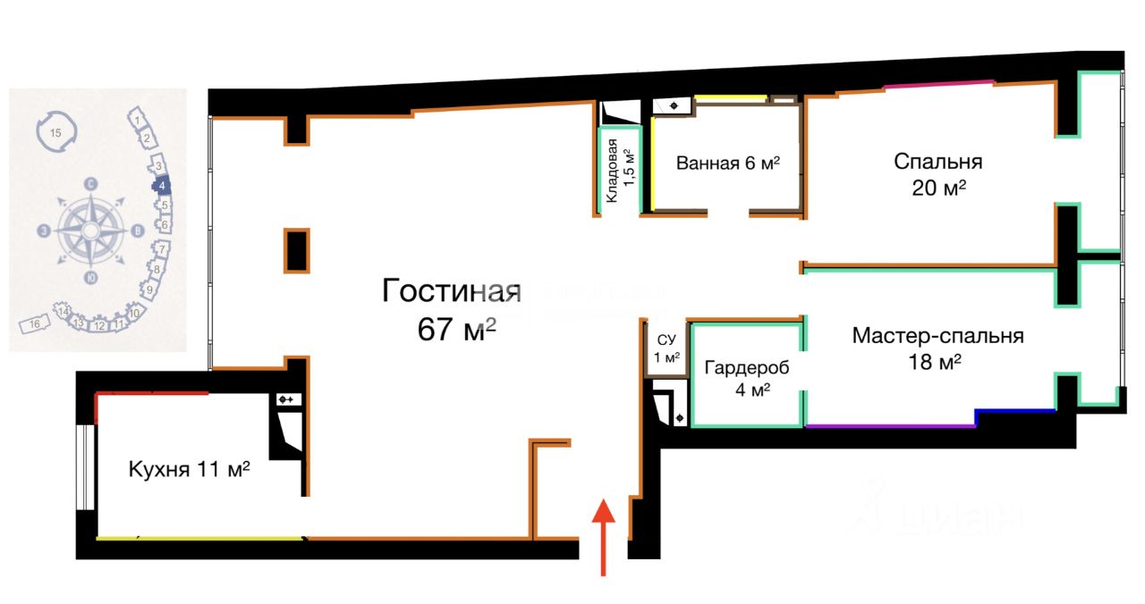 Мастер-спальня — 18 м² и гардероб 4 м² — приватная зона покоя и комфорта.