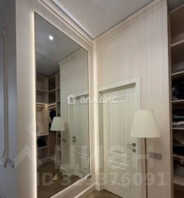Прихожая: эмалированный шкаф с фрезеровкой, зеркало с подсветкой, вывод канализации под робот-пылесос с самоочисткой. Две гардеробные с фасадами Egger и зеркалами с подсветкой. Вся мебельная фурнитура — Blum.