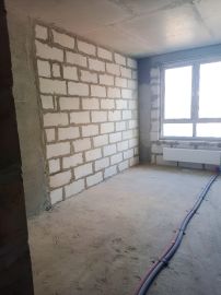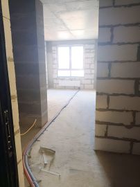 Квартира-студия 24,3 кв. м. с предчистовой отделкой. Выполнены стяжка, выровнены стены, произведена разводка электрики.