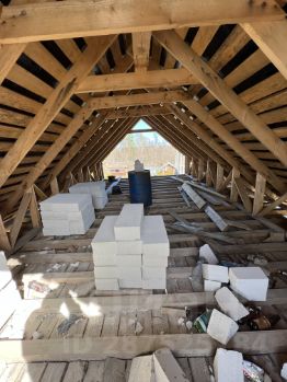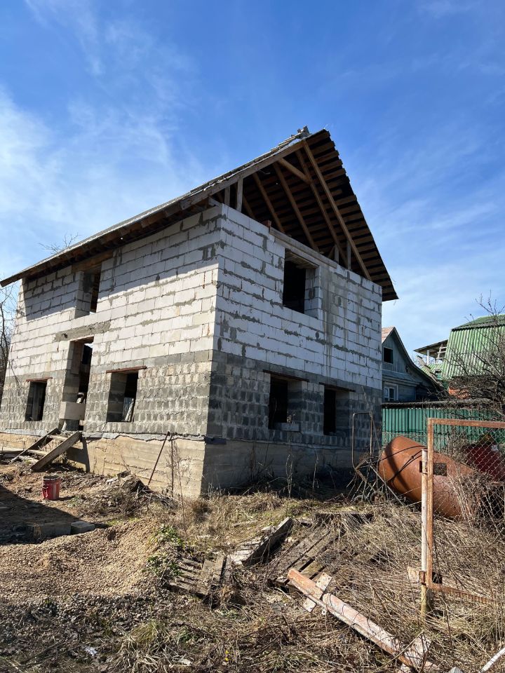 Дом бы построен для себя, все работы были сделаны вручную. Первый этаж выложен фундаментными блоками, Второй этаж из газоблока. Есть Мансарда из дерева, лестниц нет. Три парковочных места, отсыпанные щебёнкой, одно парковочное место крытое. Есть плодовые деревья, и место для грядок или газона.