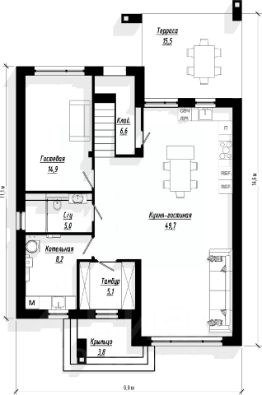 - гараж, терраса, котельная, гардеробные, кладовая.