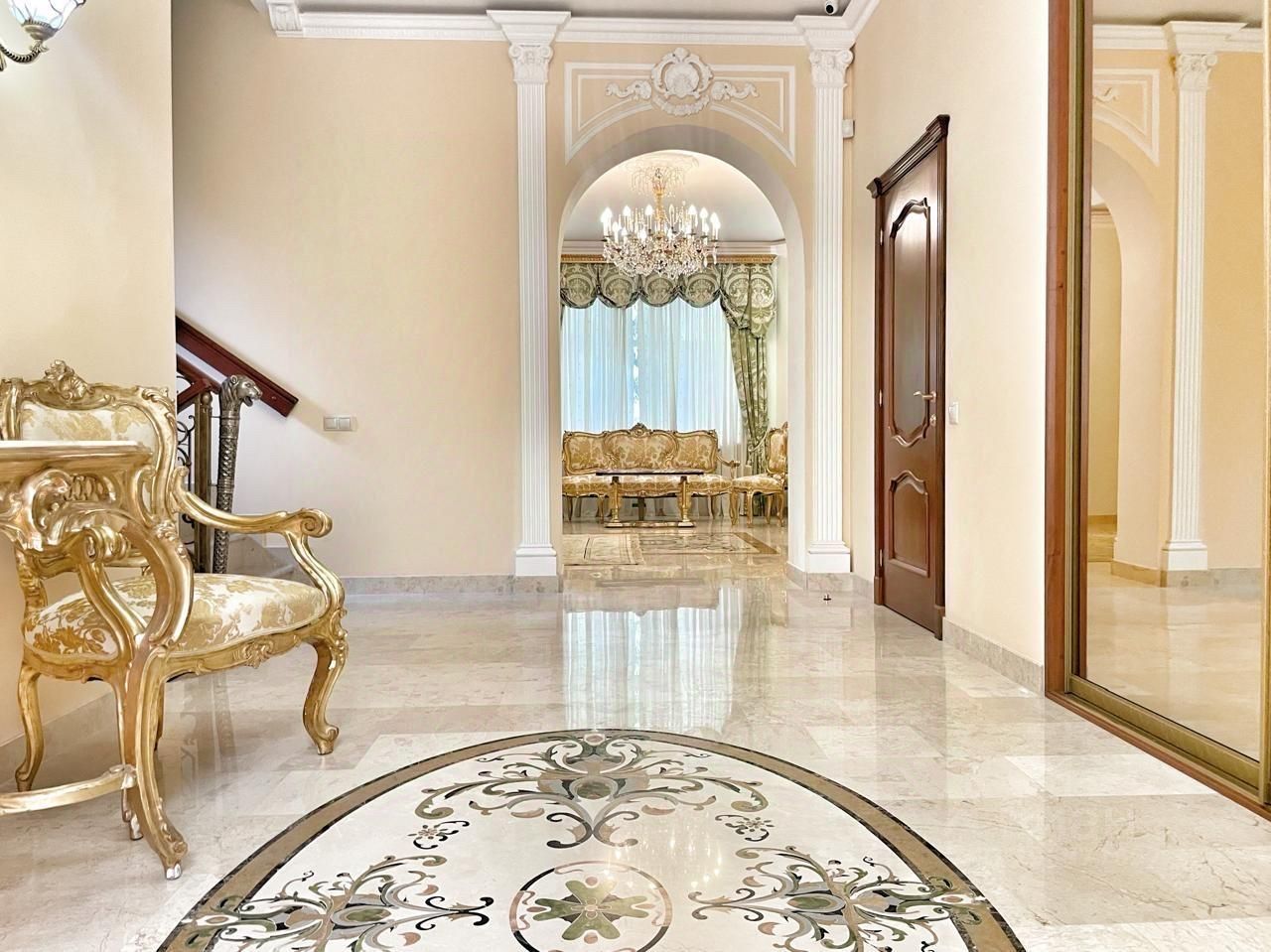 Усадьба 450 кв. м под ключ с парком и лесом в закрытом охраняемом коттеджном поселке СНТ ТСЖ Благовещенка. Каменный дом 2010 г. постройки на монолитном фундаменте с монолитными перекрытиями. Кровля мягкая черепица. Наружная отделка с использованием итальянского мрамора. Дорогая внутренняя отделка. Полы 1 и цокольного этажей и лестница натуральный мрамор ручной работы. частично меблирован и оборудован всей необходимой бытовой техникой. Полностью готов к проживанию. 4 уровня.