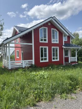 Построен из качественных материалов по чётко продуманному и удобному проекту. Фундамент ж/б сваи заглубление на глубину промерзания. Первый этаж: на полу керамогранит, натяжные потолки со встроенными светильниками, поклеены обои, установлены межкомнатные двери, в санузле керамогранит, установлен унитаз. Второй этаж: на полу ламинат, натяжные потолки со встроенными светильниками, поклеены обои, установлены межкомнатные двери, в санузле керамогранит, установлен унитаз. Площадь дома - 160 кв.м + 15 кв.м. крытая терраса. На первом этаже размещена большая просторная кухня-гостиная (42 кв.м.), гостевая спальня (10 кв.м.), котельная / постирочная, санузел, прихожая. На втором этаже: 3 спальни (20 /13 /10 кв.м.), гардеробная (7,7 кв.м.), санузел.