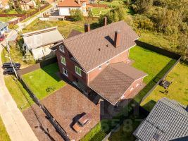 Дом построен в 2023 году из кирпича Porotherm на свайно-ленточном фундаменте, с монолитными перекрытиями и монолитными лестницами, сделана стяжка пола, фасад здания отделан облицовочным кирпичом, установлены тройные стеклопакеты Veka, крыша отделана мягкой черепицей и аква-системой, сделан водосток. Заведены все необходимые коммуникации: разведено электричество (трехфазное, 15 квт), подведен газ и установлено газовое оборудование, сделано разведение воды. Также в доме сделаны три шахты для камина.