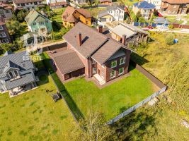 Планировка дома включает в себя просторный зал с обеденной зоной, пять комфортных спален и зону отдыха, обеспечивая достаточное место для всей семьи и гостей. Высокие потолки, достигающие 3,4 метра, и большие окна придают комнатам ощущение простора и воздушности. В доме сделаны 2 балкона, с которых открывается потрясающий вид на лесную чащу. Сделан теплый гараж на два машиноместа с автоматическими воротами. Вокруг дома сделан дренаж.