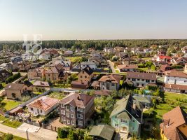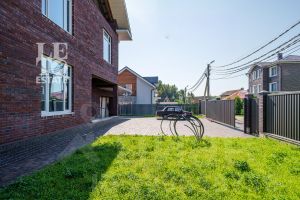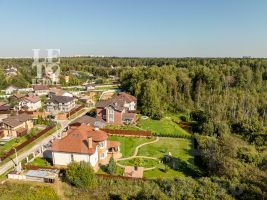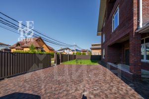 Участок правильной формы огорожен металлическим забором с калиткой и автоматическими откатными воротами, расположен на тихой улице, со своим выходом в лес. По всем участку засеян газон, а перед домом сделана площадка из клинкерной брусчатки для парковки двух автомобилей.